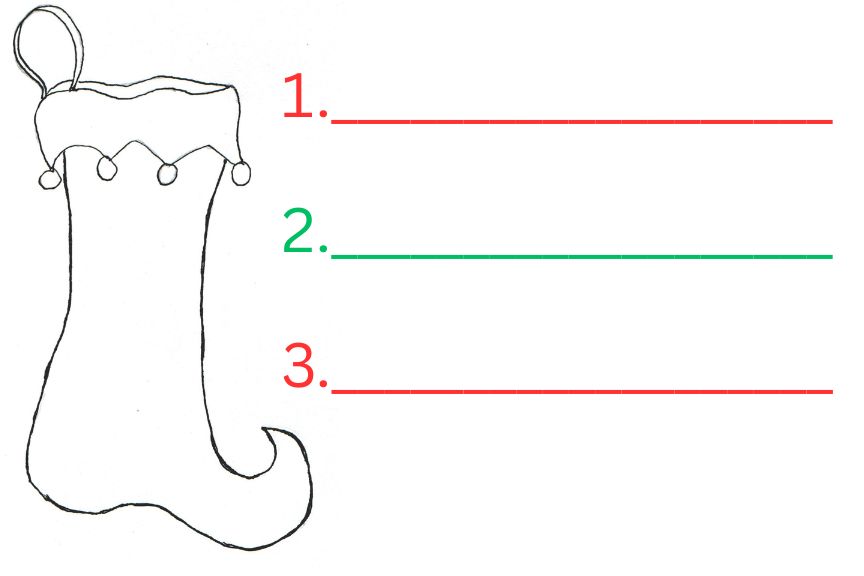Just for fun, decorate this little stocking with colorful markers and then add three things you hope to find stuffed inside! (Click here for a printable version of the image.)